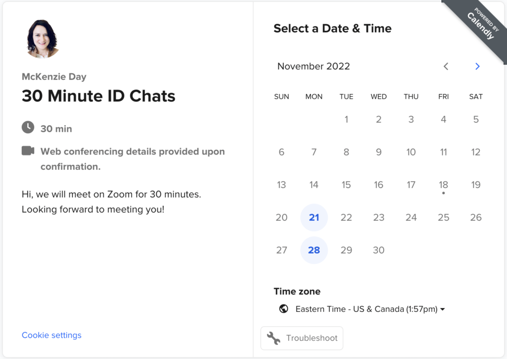 Are you a teacher looking to transition to instructional design who wants free guidance? Starting this upcoming Monday, I will be setting aside a few time slots weekly for free 1:1 chats.
